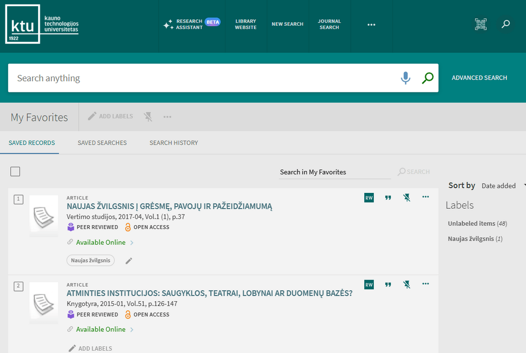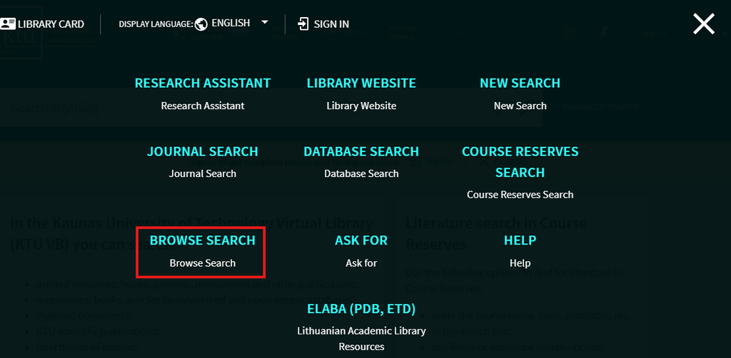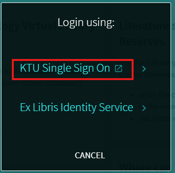 When you sign into KTU Virtual Library, you are able to do the following: