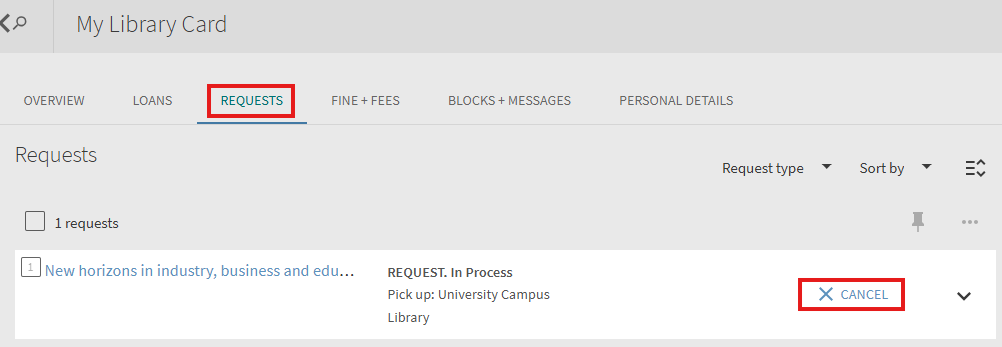 To cancel a hold request: