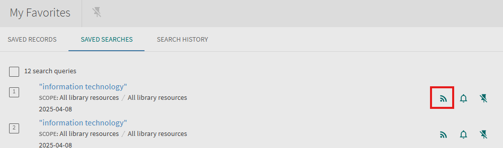 Enabling RSS for a saved search: